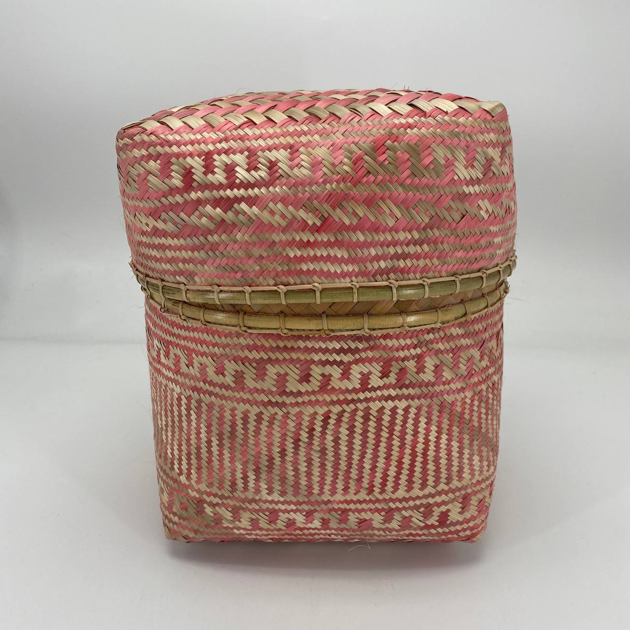 This beautiful handwoven bamboo box with lid was made by Iban artisan Meragi Anak Muking.