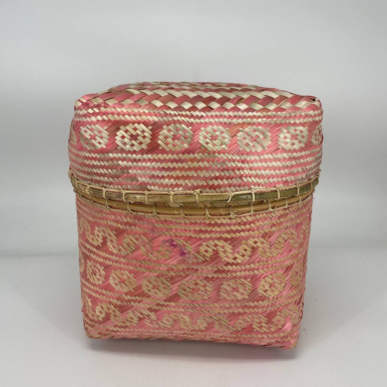 This beautiful handwoven bamboo box with lid was made by Iban artisan Tanai Anak Penyembah