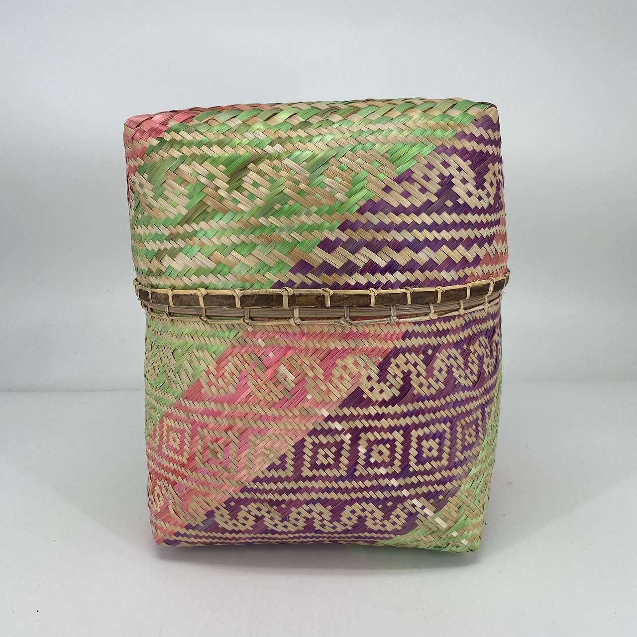 This beautiful handwoven bamboo box with lid was made by Iban artisan Laie Anak Abang.