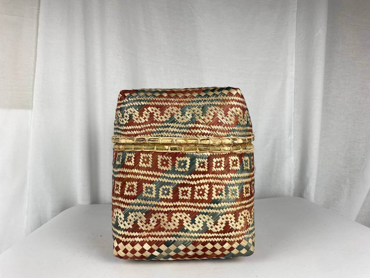 This handwoven bamboo box with lid was made by Iban artisan Seman, located in Batang Ai, Lubok Antu.