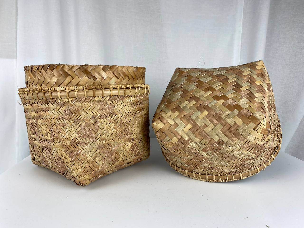 This beautiful handwoven bamboo box with lid was made by Iban artisan Ijah Entap, located in Batang Ai, Lubok Antu.
