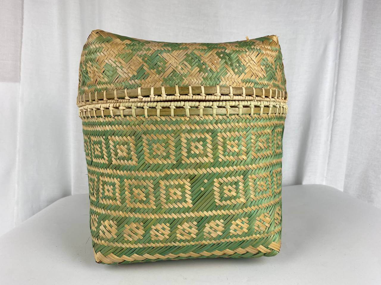 This beautiful handwoven bamboo box with lid was made by Iban artisan Miloh Maja, located in Batang Ai, Lubok Antu.