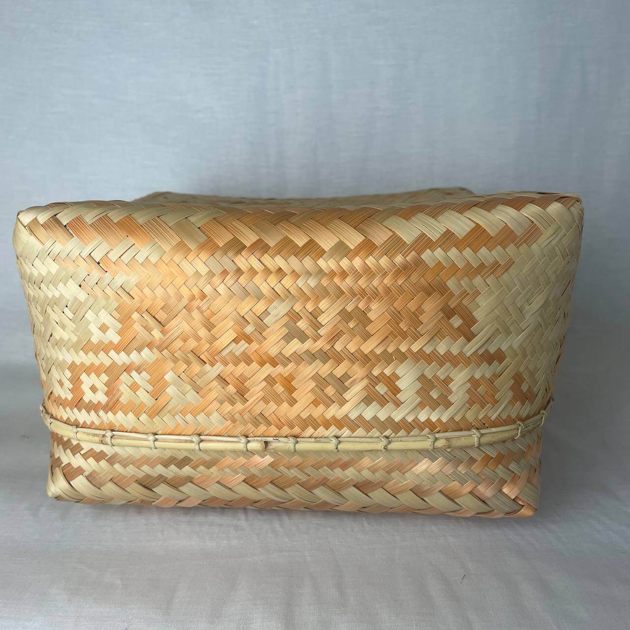 This beautiful handwoven bamboo box with lid was made by Iban artisan Ranap Anak Numpang.
