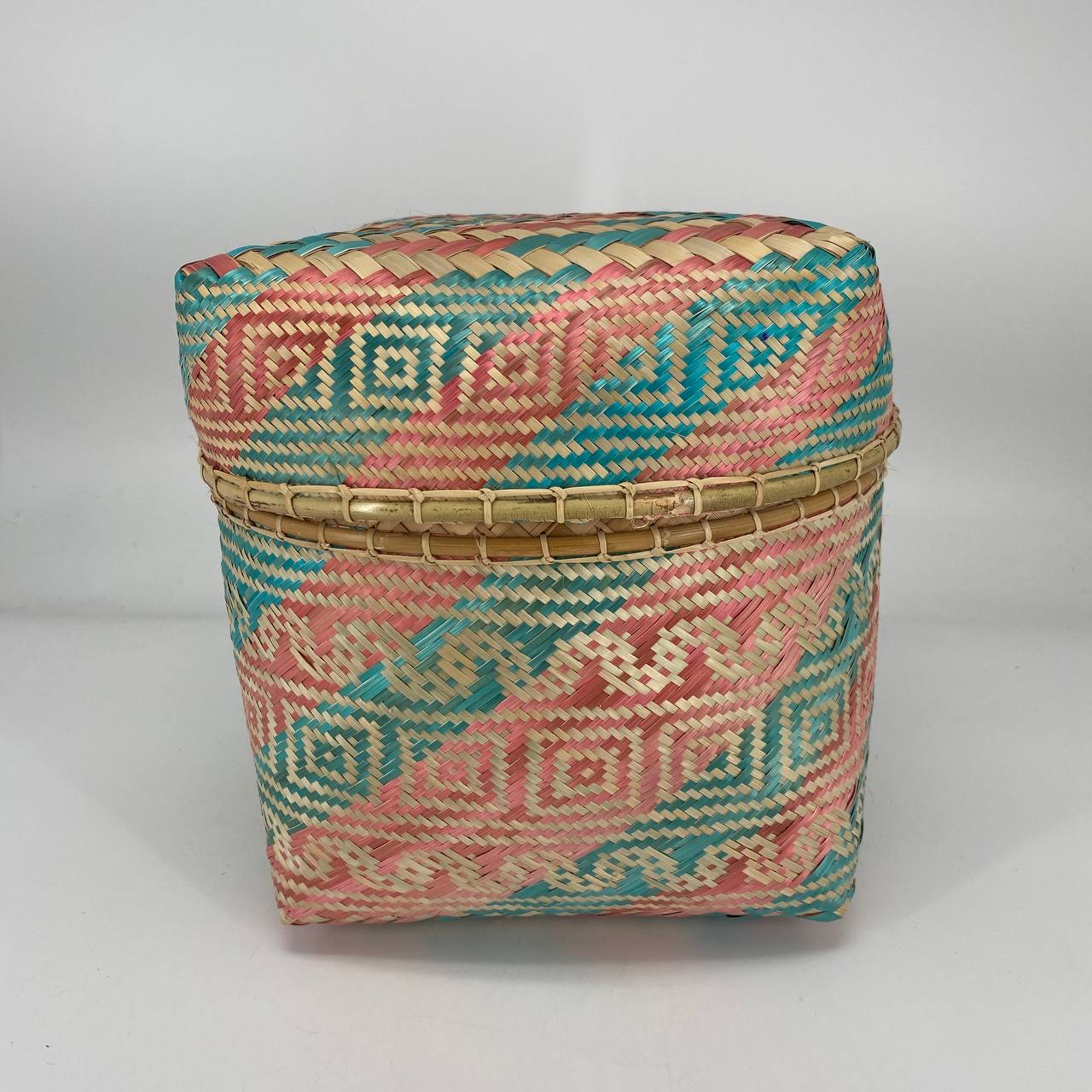 This beautiful handwoven bamboo box with lid was made by Iban artisan Tanai Anak Penyembah