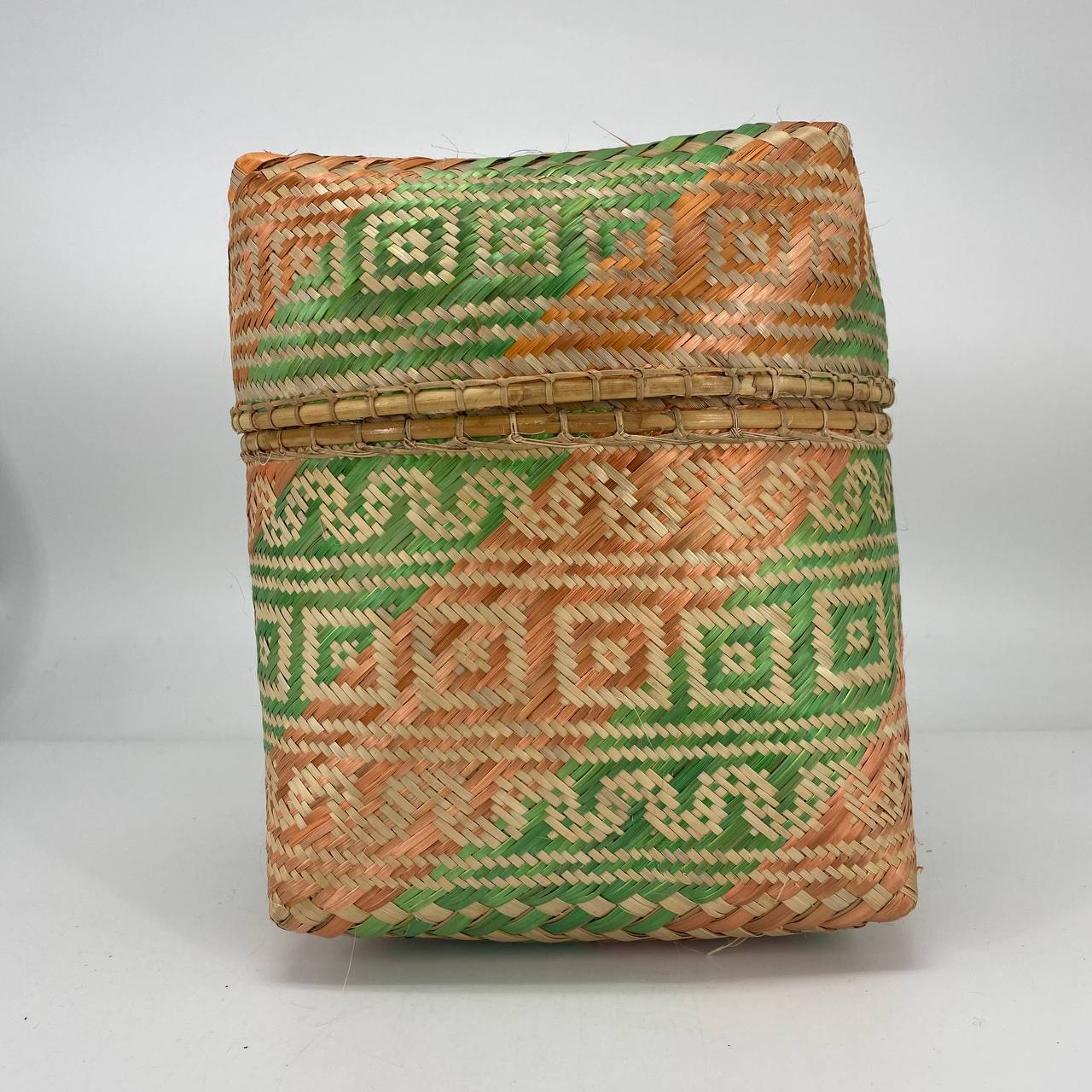This beautiful handwoven bamboo box with lid was made by Iban artisan Bejau Anak Merom.