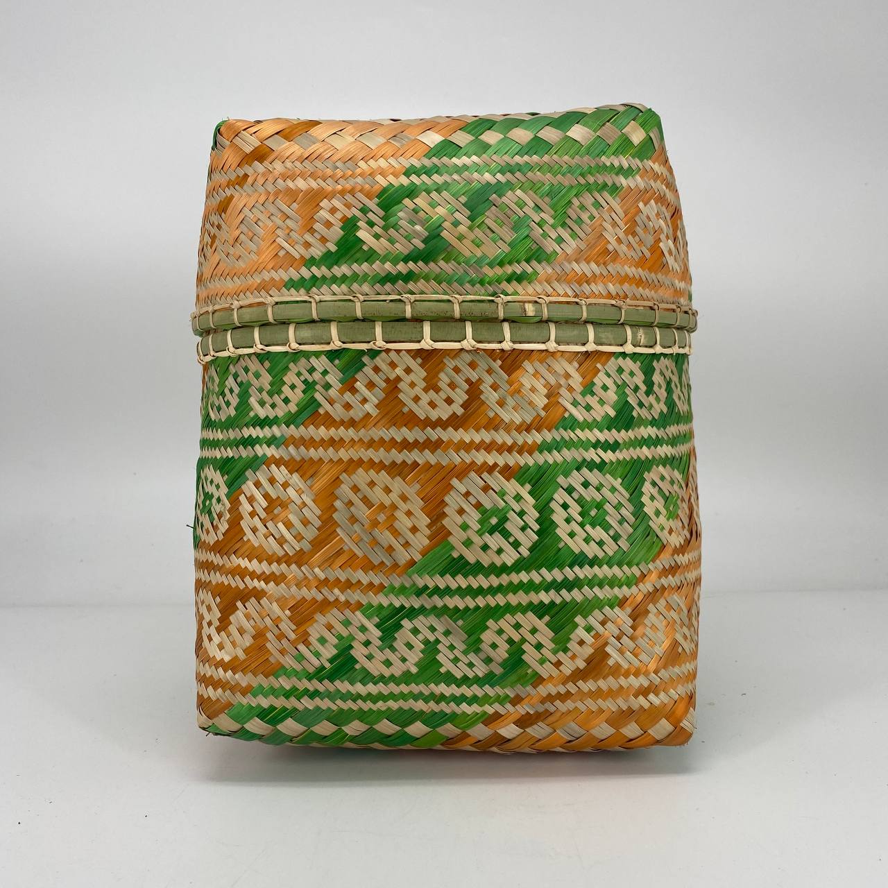 This beautiful handwoven bamboo box with lid was made by Iban artisan Bejau Anak Merom.