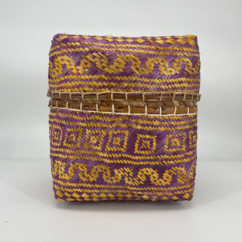 This beautiful handwoven bamboo box with lid was made by Iban artisan Siti anak Renggie.