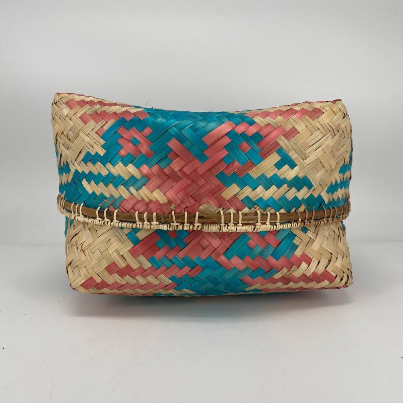 This beautiful handwoven bamboo box with lid was made by Iban artisan Siti anak Renggie.
