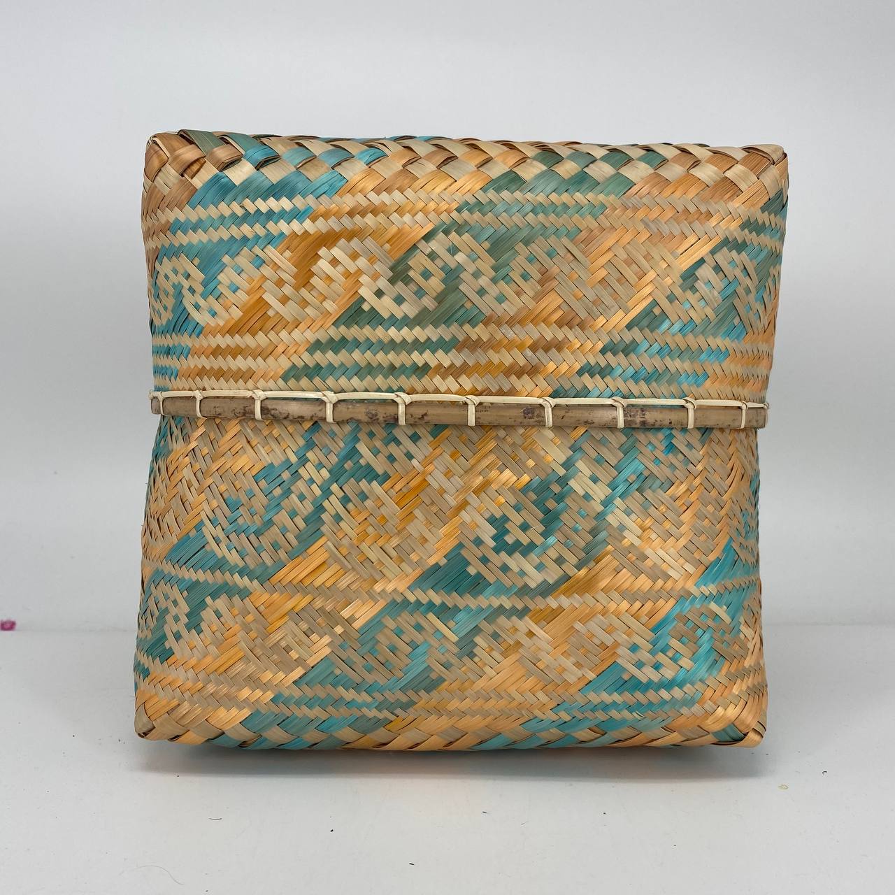 This beautiful handwoven bamboo box with lid was made by Iban artisan Siti anak Renggie.