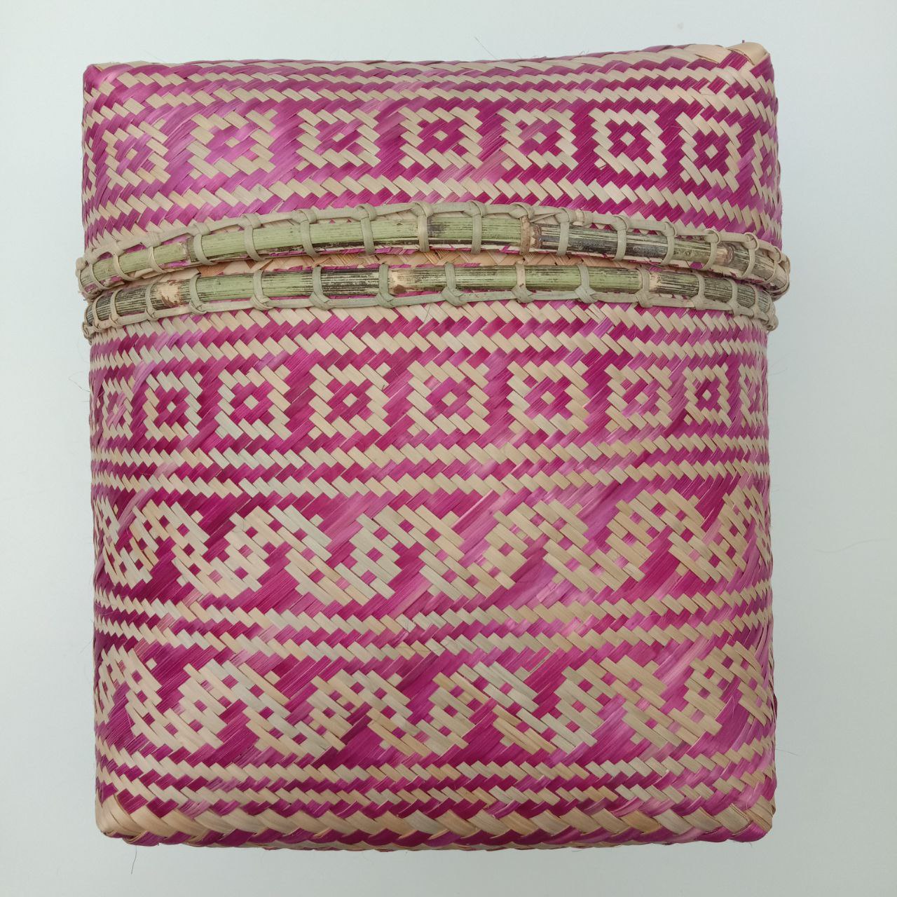 This beautiful handwoven bamboo box with lid was made by Iban artisan Siti anak Renggie.