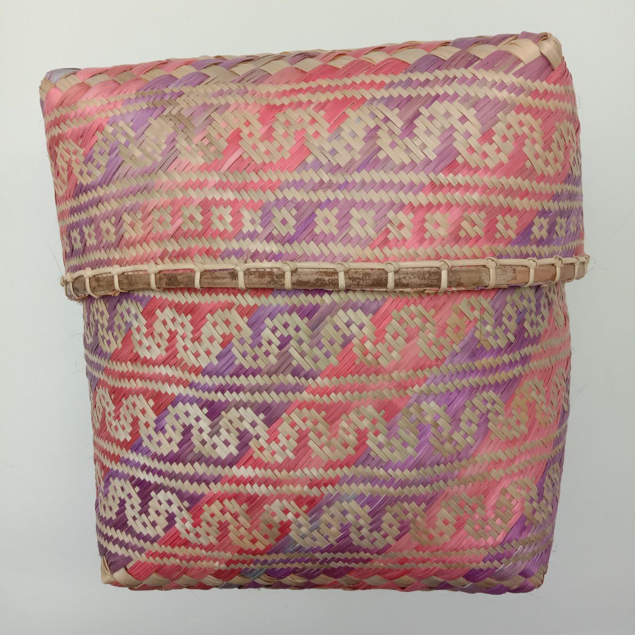 This beautiful handwoven bamboo box with lid was made by Iban artisan Injoh.