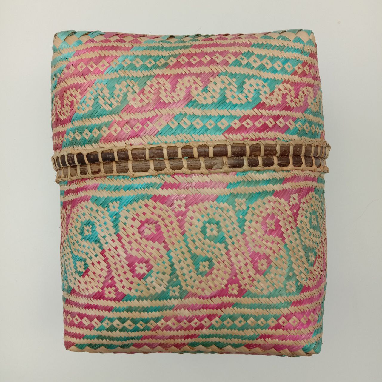 This beautiful handwoven bamboo box with lid was made by Iban artisan Jani Muking.