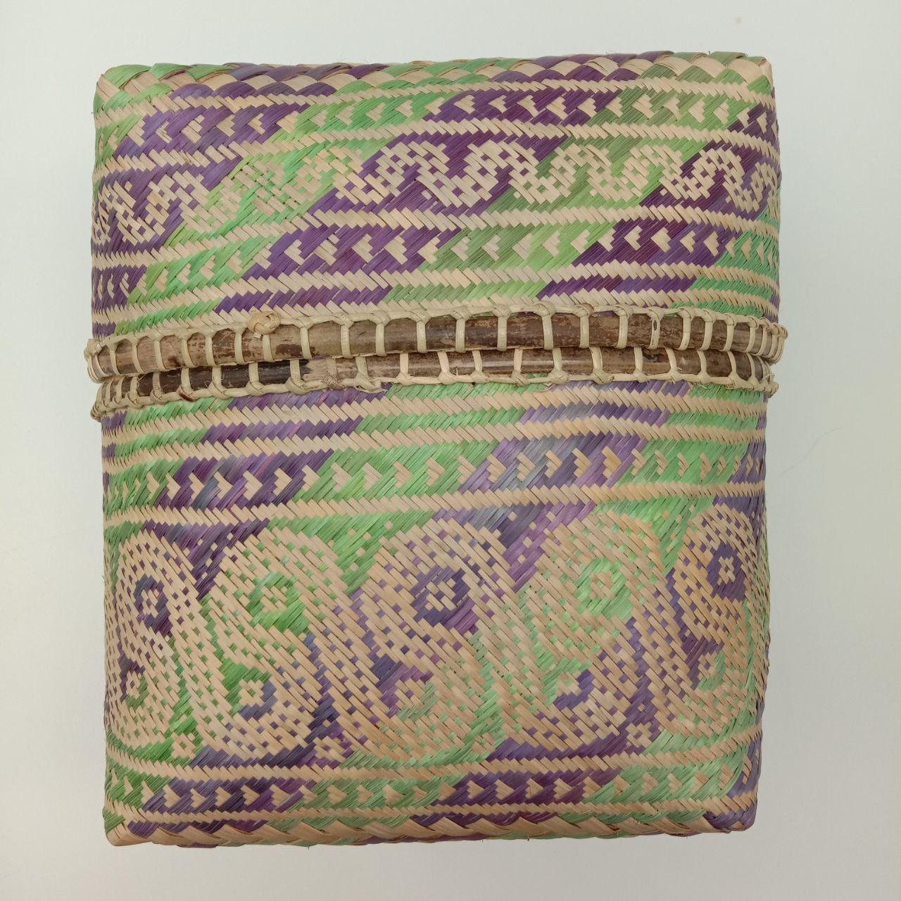 This beautiful handwoven bamboo box with lid was made by Iban artisan Jani Muking.