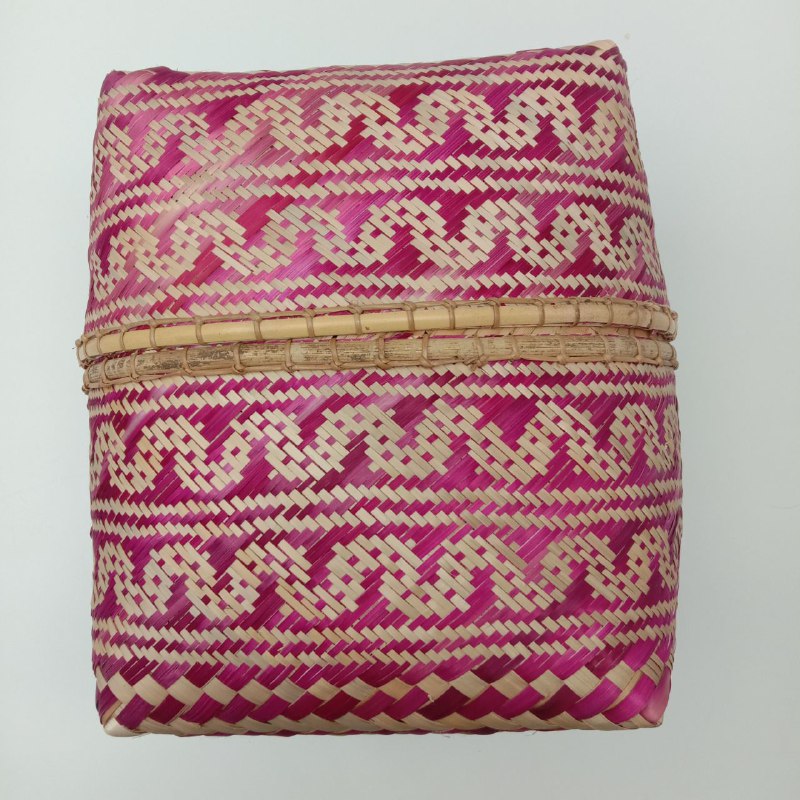 This beautiful handwoven bamboo box with lid was made by Iban artisan Entimun.