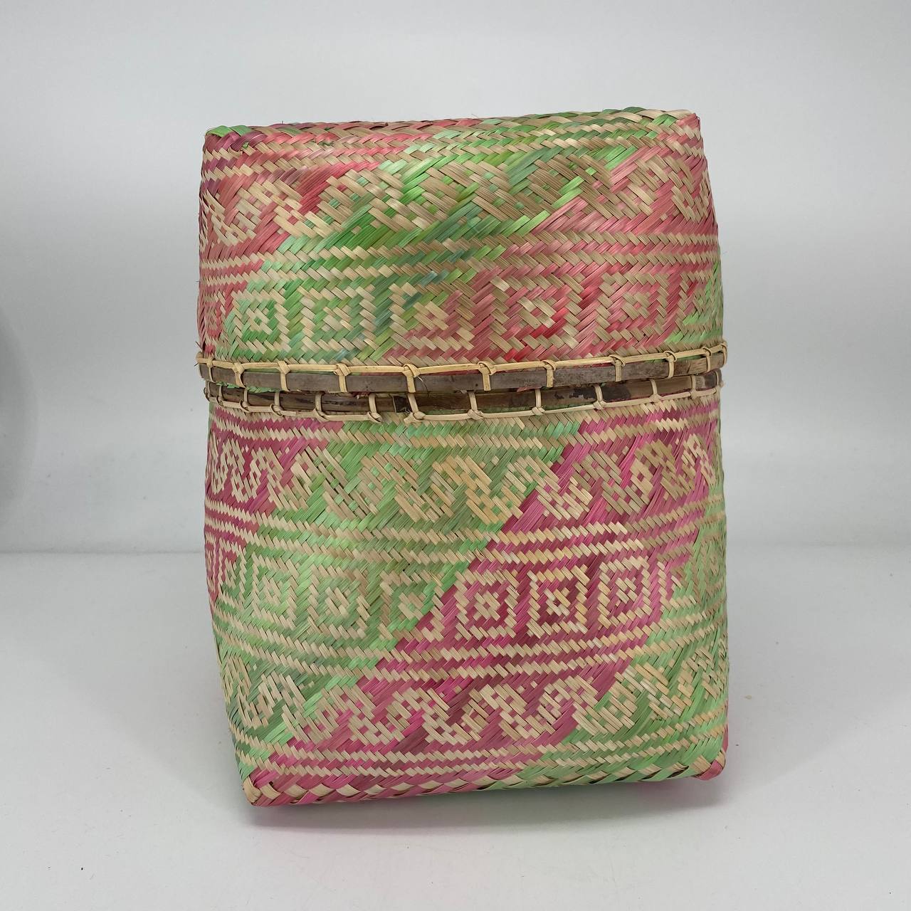 This beautiful handwoven bamboo box with lid was made by Iban artisan Laie Anak Abang.