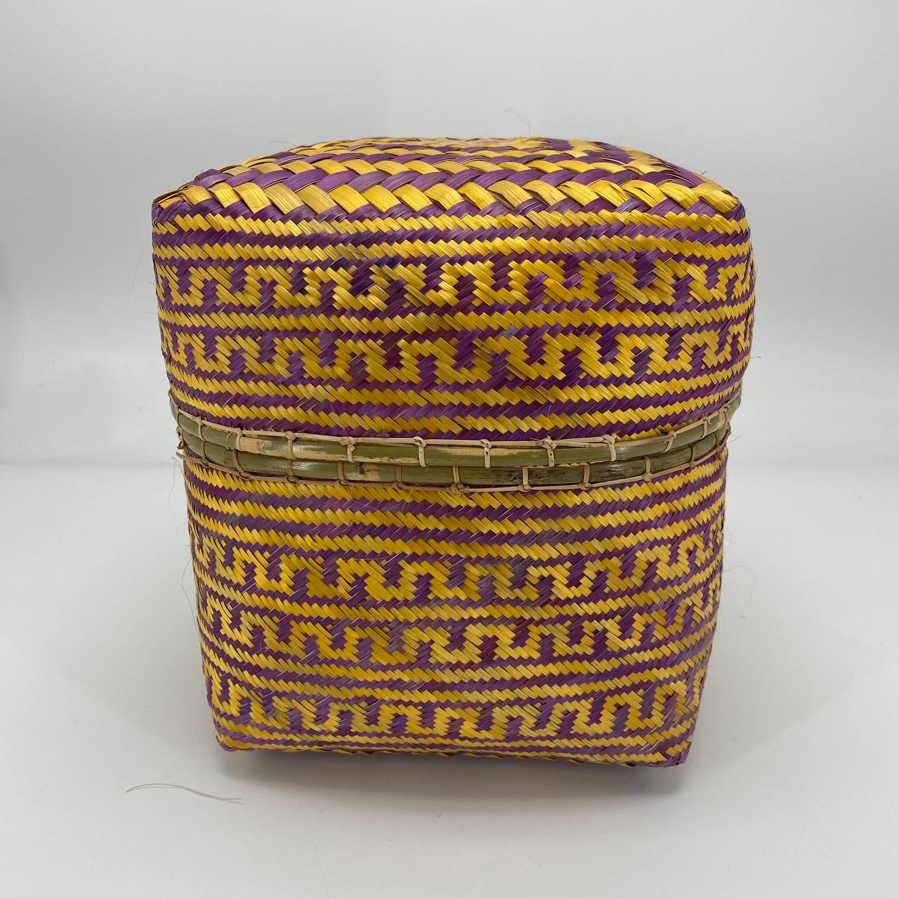 This beautiful handwoven bamboo box with lid was made by Iban artisan Meragi Anak Muking.