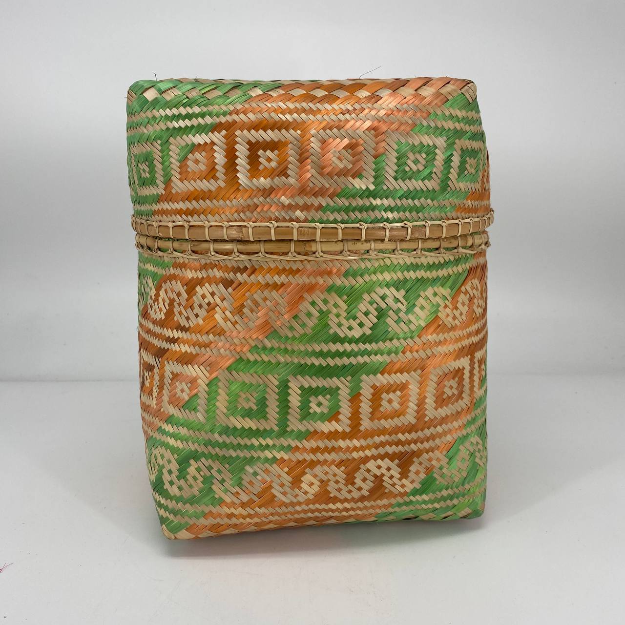 This beautiful handwoven bamboo box with lid was made by Iban artisan Seman.