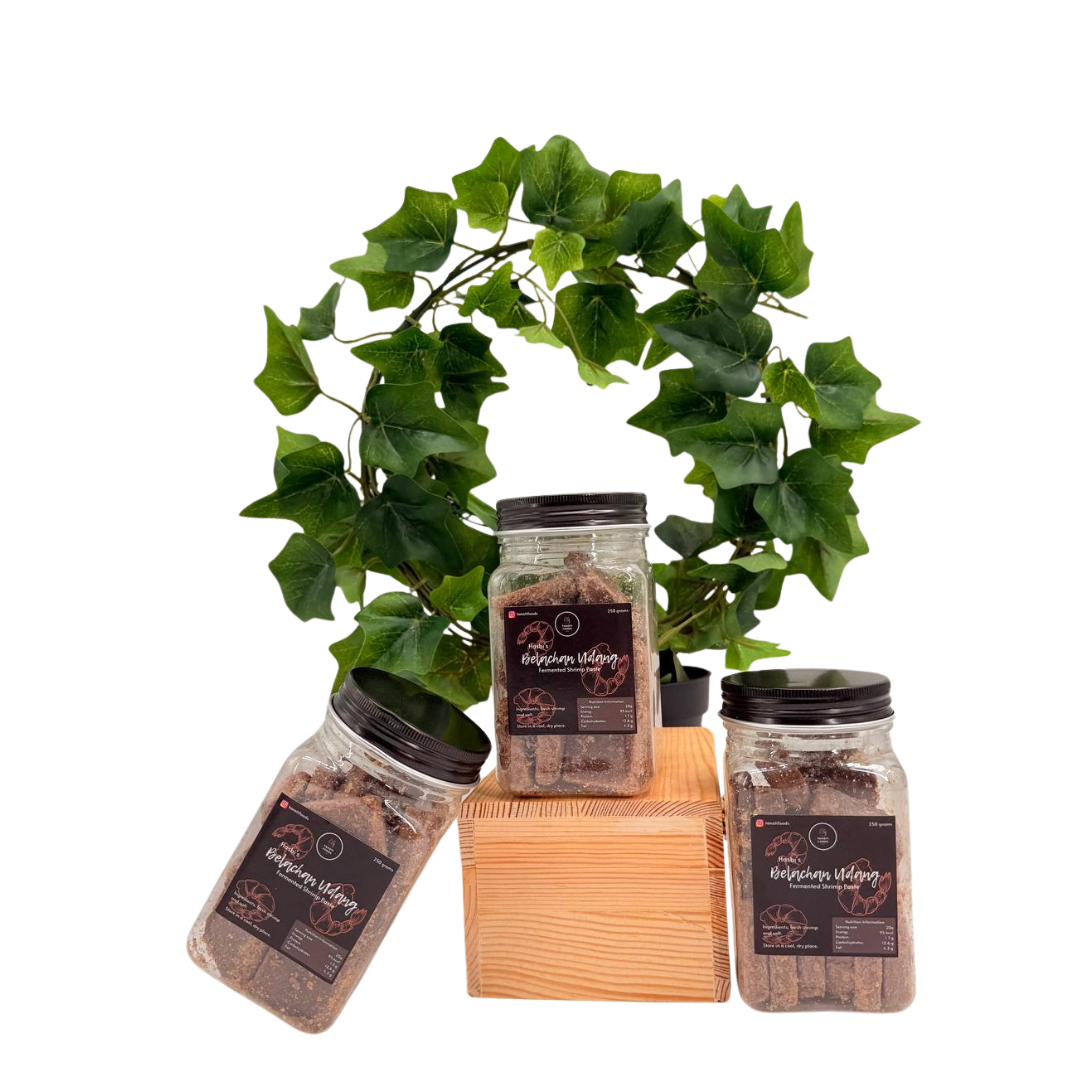 Hasbi's Belachan Udang (Fermented Shrimp Paste) is made entirely by a husband & wife team. From harvesting the shrimp, salting, draining and repetitively sun-drying and grinding into a smooth paste which is then dried out again as thin sheets, it is a time-consuming process that takes several days.