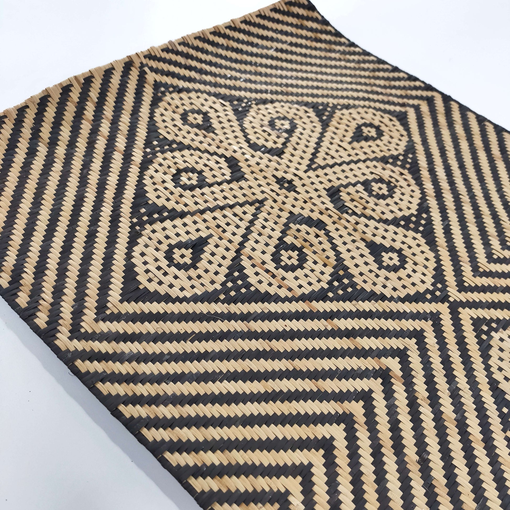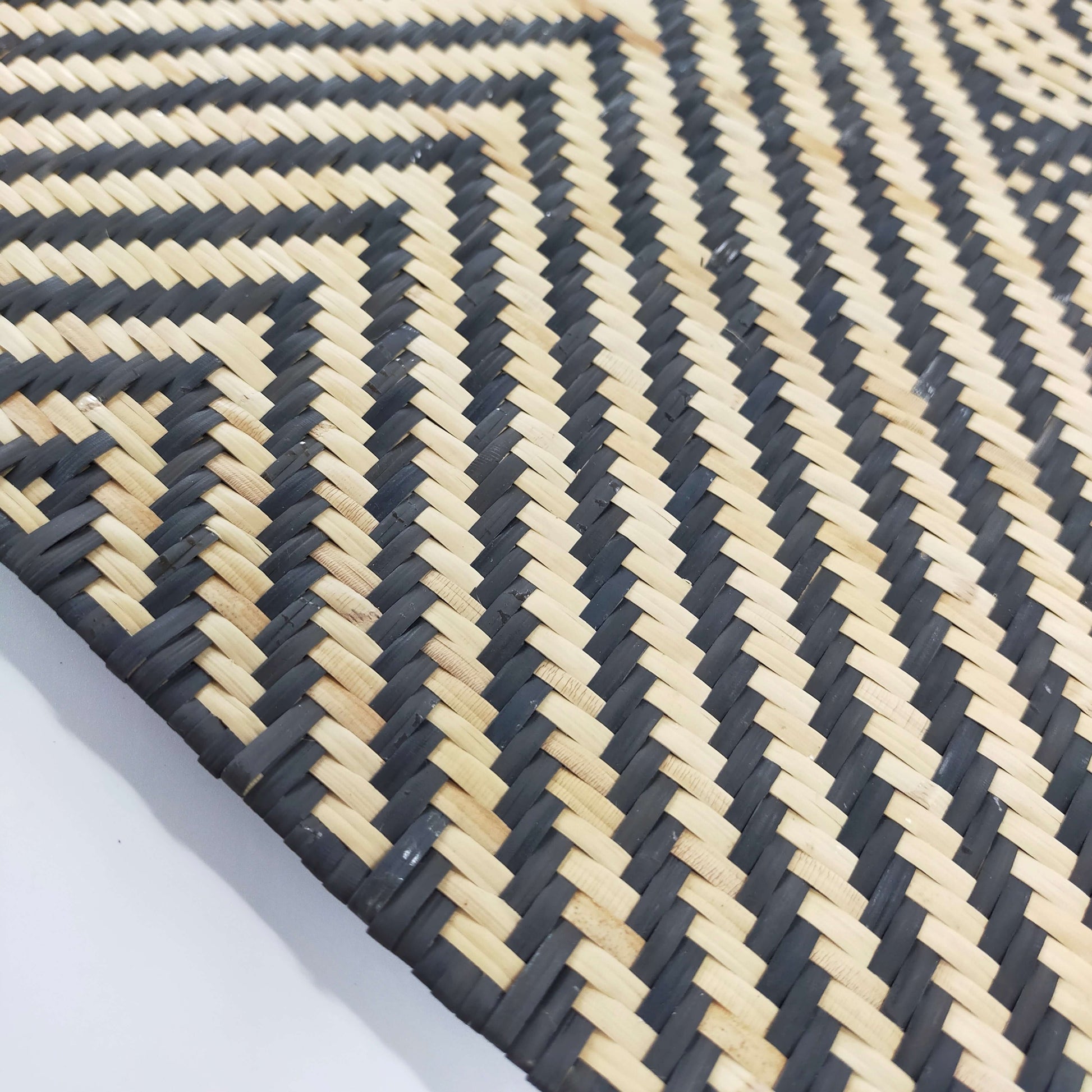 This uniquely patterned rattan table runner was handwoven by artisan Winnie Padan.